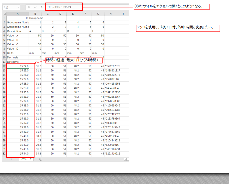 Vbaは初めてです Csvファイルをエクセルで開くと 下記のよ Yahoo 知恵袋
