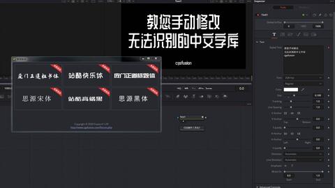 Cgs 教程 Davinci Resolve Fusion 手动修改未识别的中文字库 修改中文字体属性让fusion显示不显示的字体 320印象