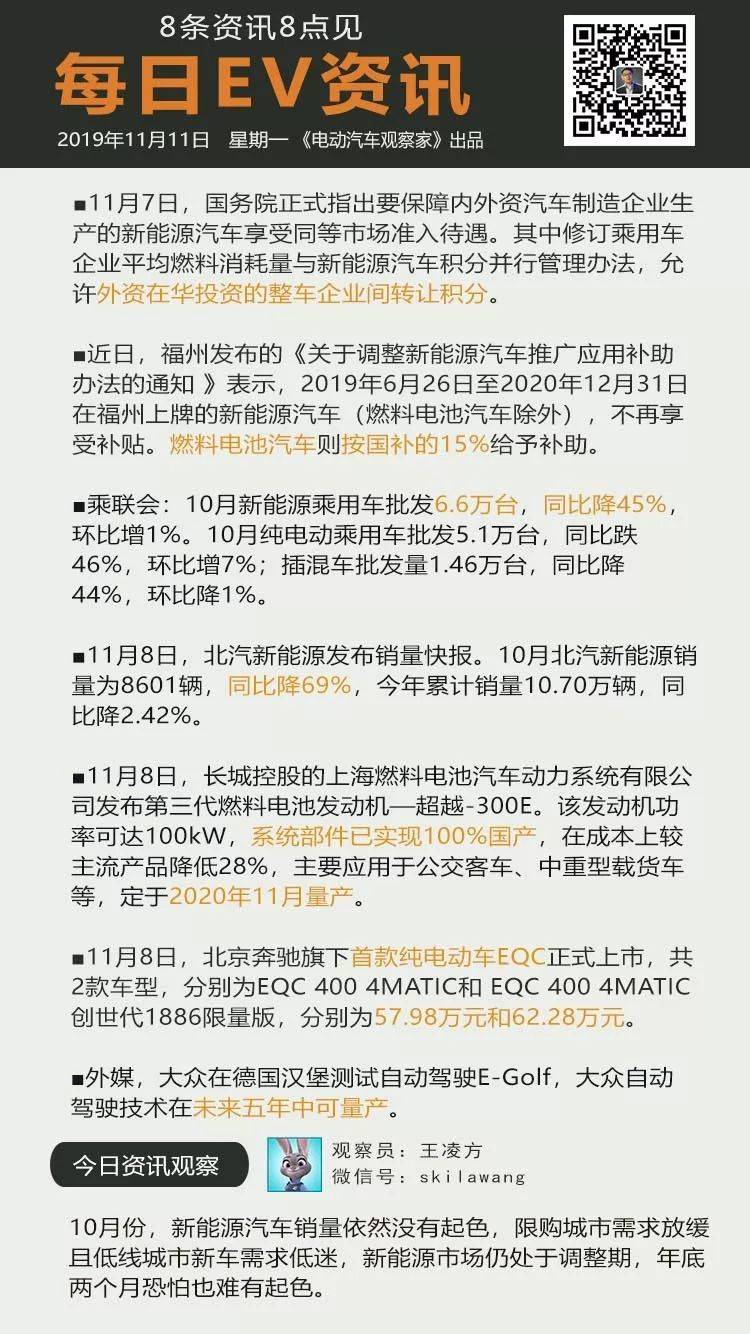 每日资讯 外资在华企业间可转让积分 福州发布地补政策 10月新能源乘用车同比跌45 有车以后