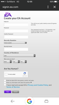 Fifa18をやろうとして Eaアカウントを作ることになったん Yahoo 知恵袋