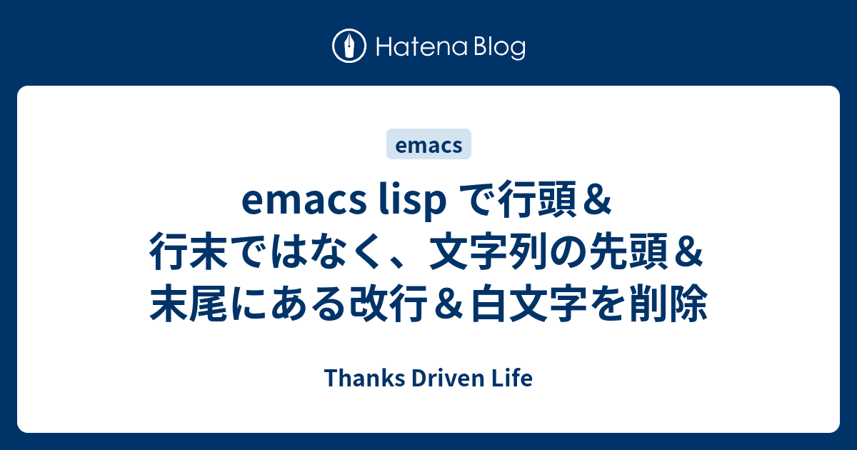 Emacs Lisp で行頭 行末ではなく 文字列の先頭 末尾にある改行 白文字を削除 Thanks Driven Life