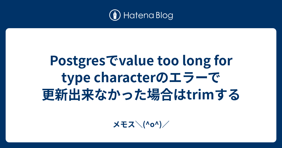 Postgresでvalue Too Long For Type Characterのエラーで更新出来なかった場合はtrimする メモス O