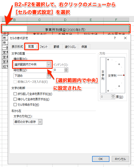 セルを結合しないで文字を中央に配置する Excel Vba 即効テクニック Excel Vbaを学ぶならmoug